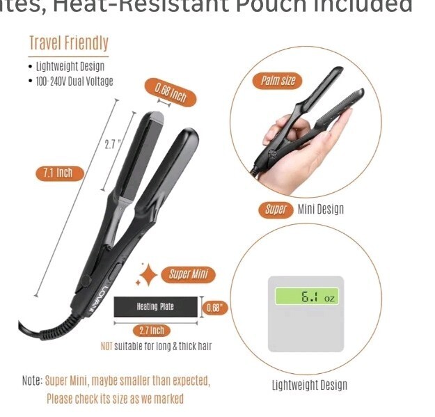 Dual?Voltage for Travel (100?240V) ? Works worldwide without a voltage converter; compact 7.1" body fits handbags, gym bags and carry?ons; heat?resistant pouch included for pack?and?go storage right after styling (US Type?A plug; use a plug adapter where required)