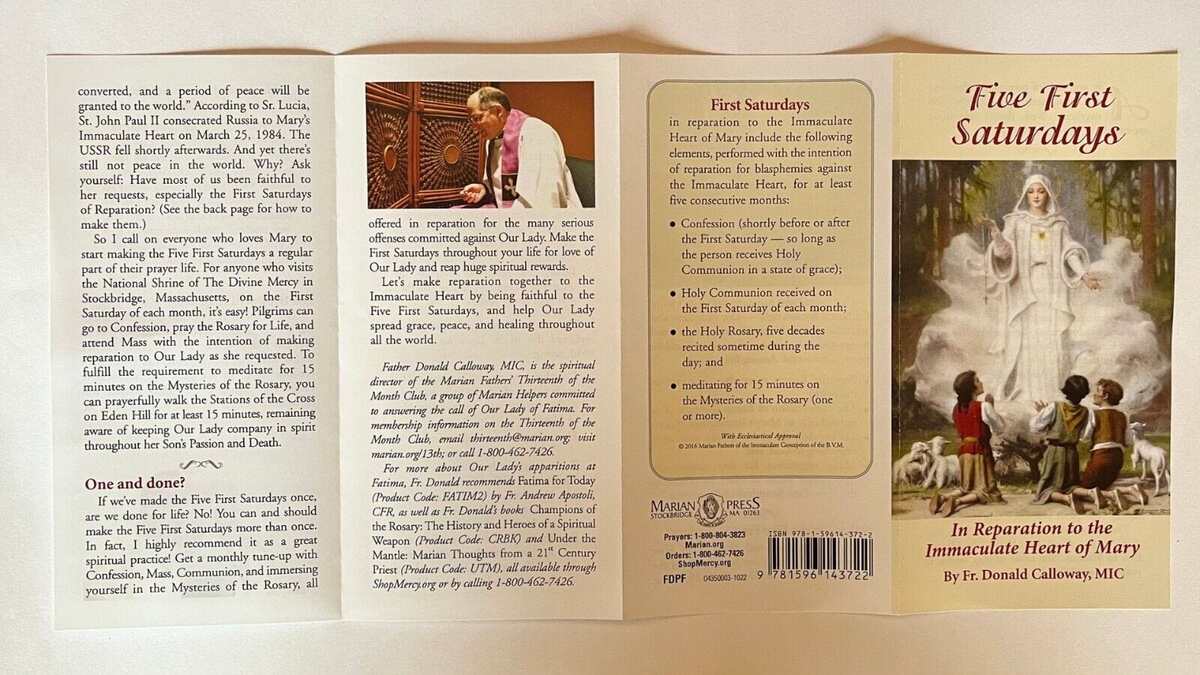 The Five First Saturdays In Reparation to the Immaculate Heart of Mary 4 Panel Pamphlet