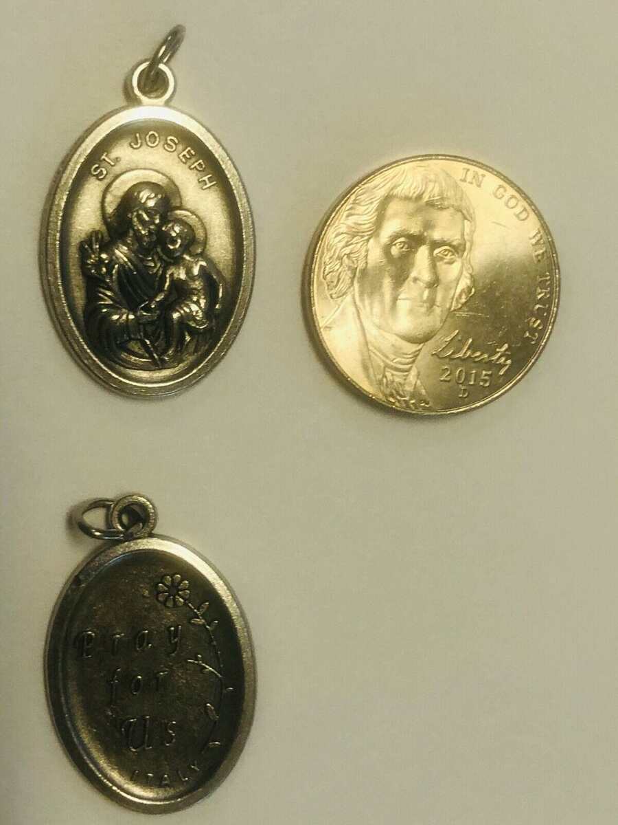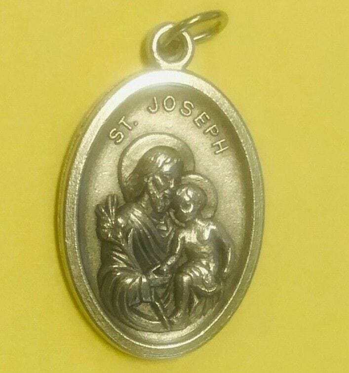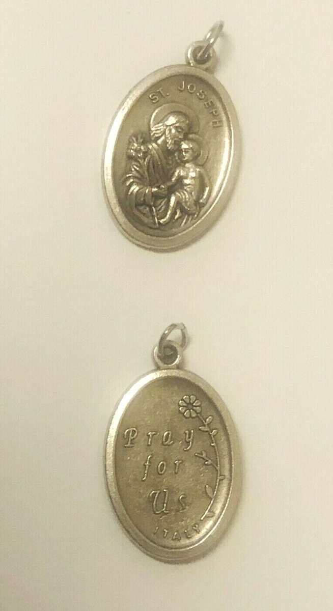 You are purchasing a very nice small silver tone medal. It has an image of Saint Joseph with Child Jesus on one side and o the other side it reads "Pray for Us". The approximate measurement : 25 mm. Made of italian oxidized silver, in Italy. See pictures for details, I've tried to take as many pictures as possible to show how beatiful it is.