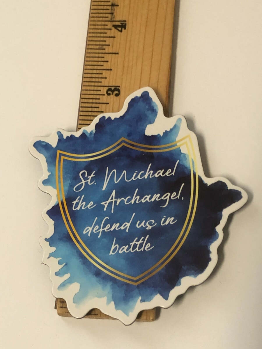 You are purchasing a nicely made magnet that comes in a blue watercolor tone. Use it on your fridge or send them individually to your family friends. Great way to send a special message and devotion to have Saint Michael defend us. Sticks to most metal surfaces. Please see pictures for details. Measures 3"