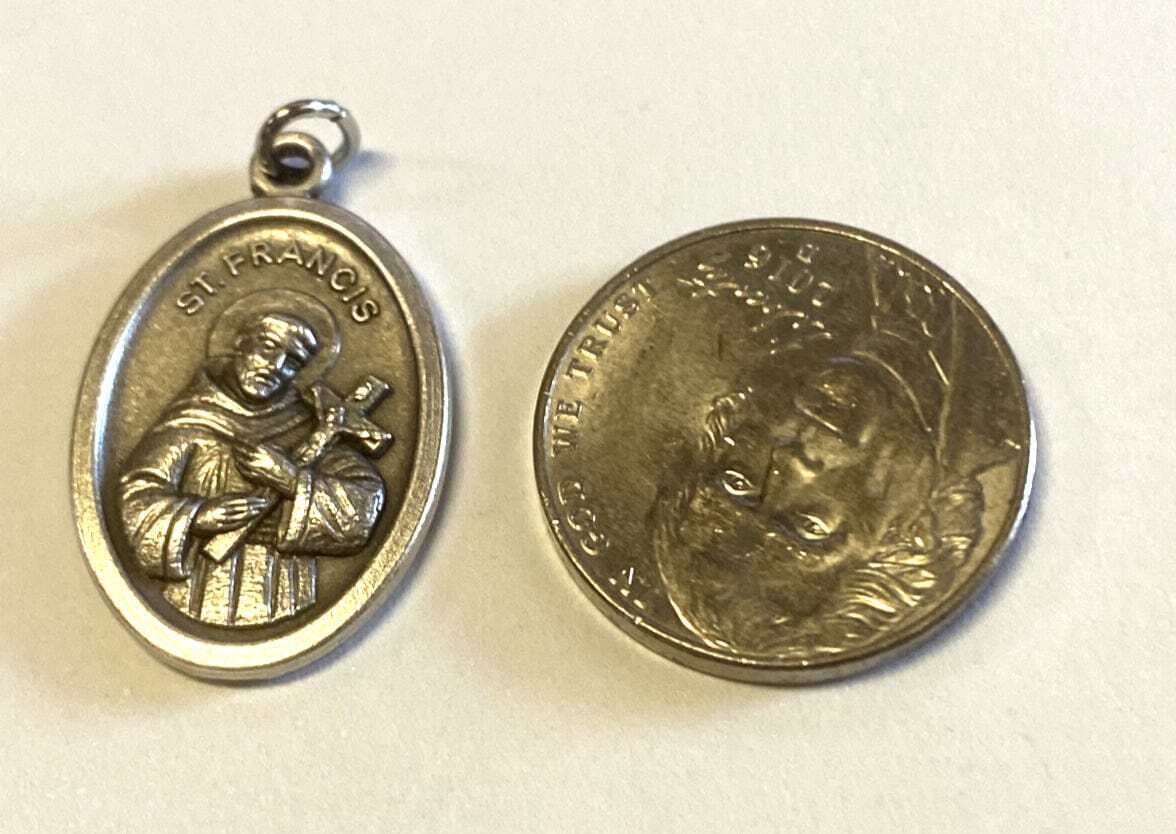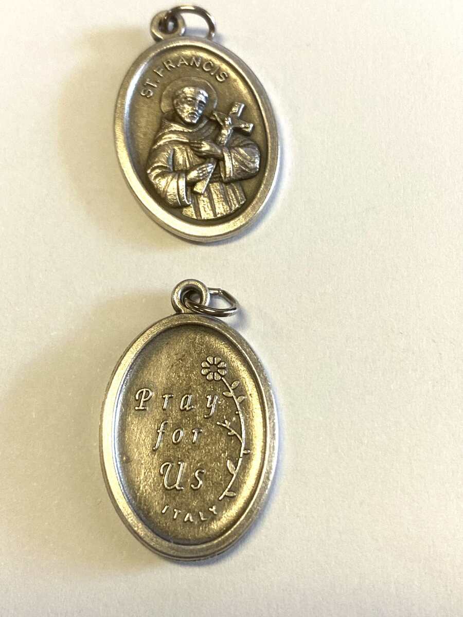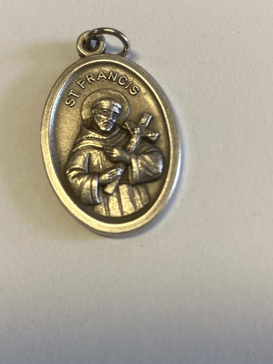 You are purchasing a very nice small oval silver tone medal of Saint Francis of Assisi.