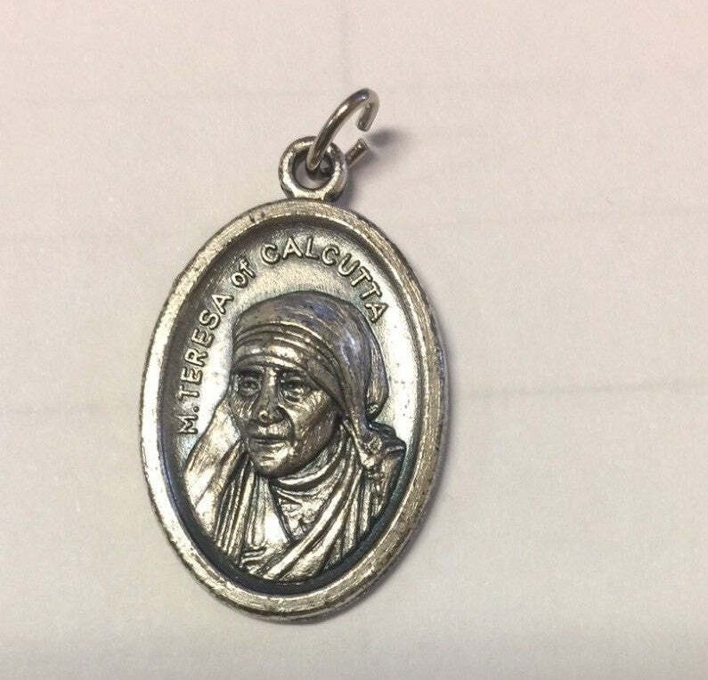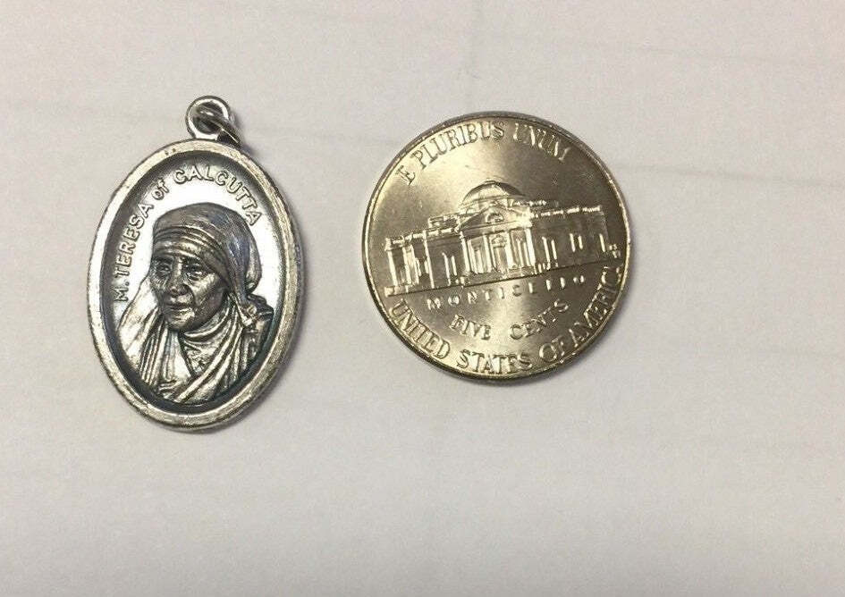 You are purchasing an oxidized metal medal of our newly canonized Saint Mother Teresa, on the back side it reads " pray for us" They were brought back from Italy. Please see pictures for size, approximate measures 25 mm, the size of a nickel. Bring her to your home and be part of her wonderful work.