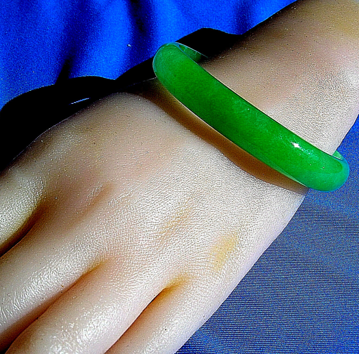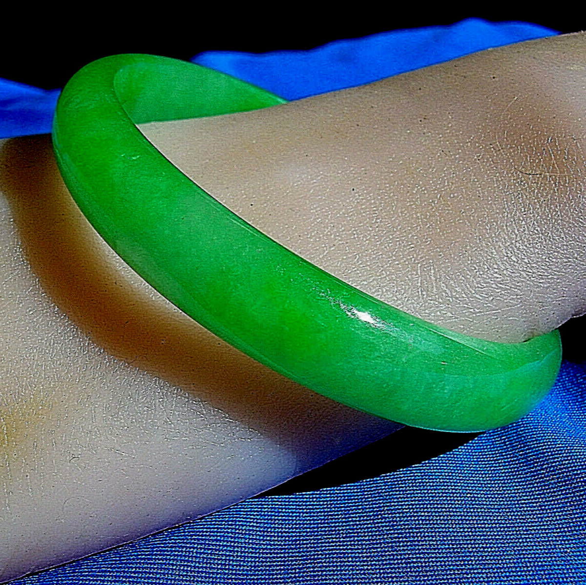 Earth mined Imperial Green color Jadeite Jade Deco Antique old Bangle Bracelet