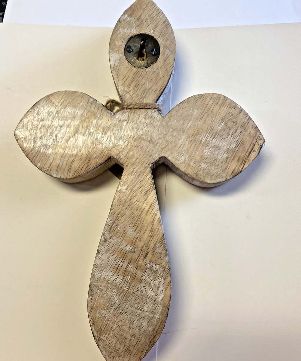 It's a different concept of cross, with a rustic, more modern look. Can enhance any room in your home or office. You could possibly also display it on a small easel.