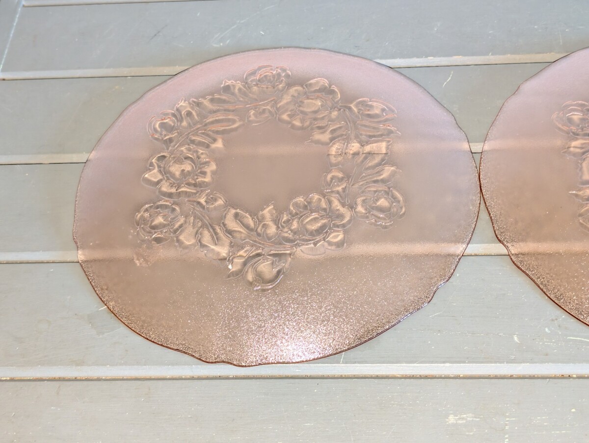 Two Vintage Arcoroc Rosaline Floral Pink Glass Dinner Plates 10”
