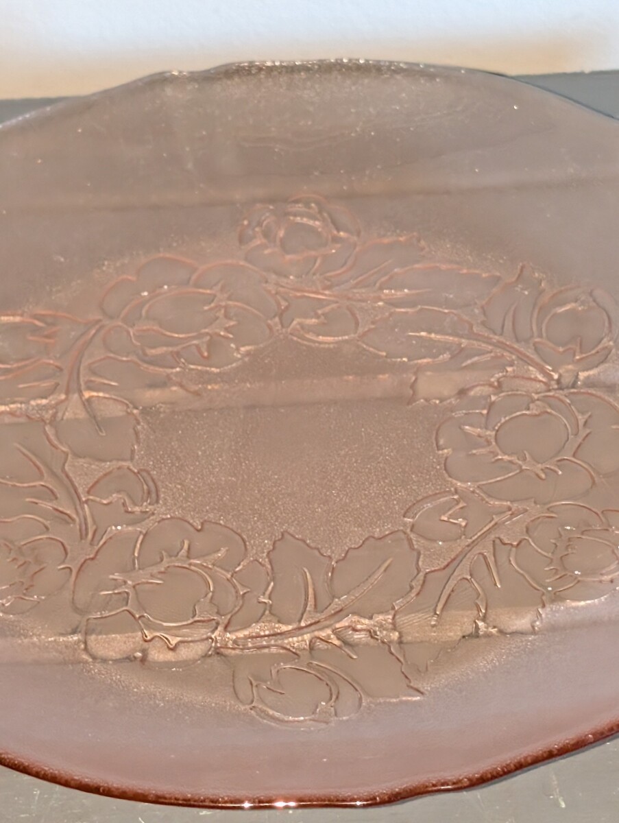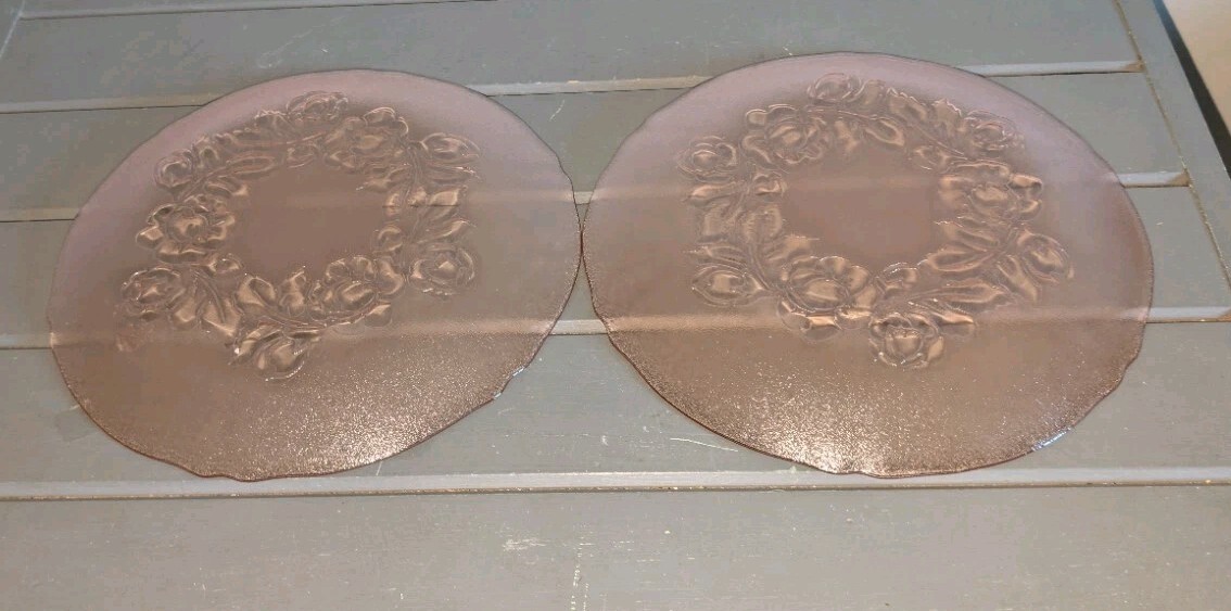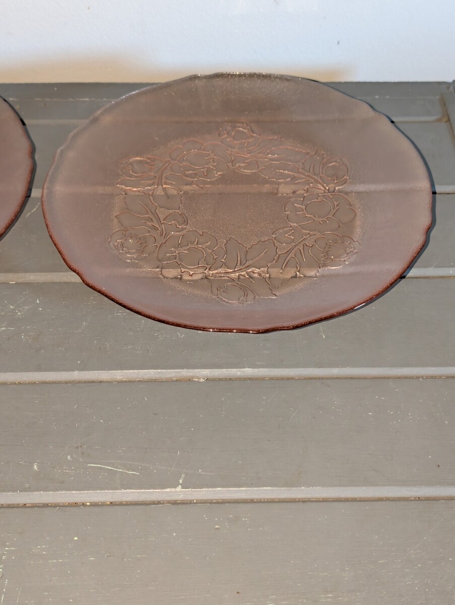Two Vintage Arcoroc Rosaline Floral Pink Glass Dinner Plates 10?