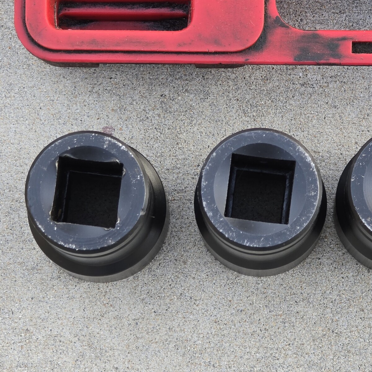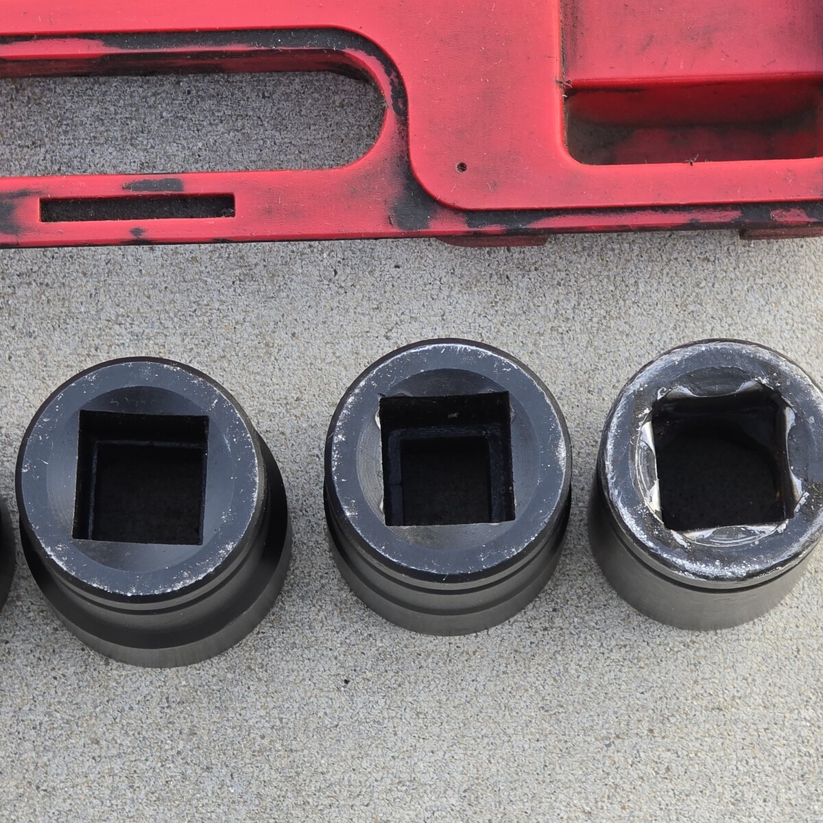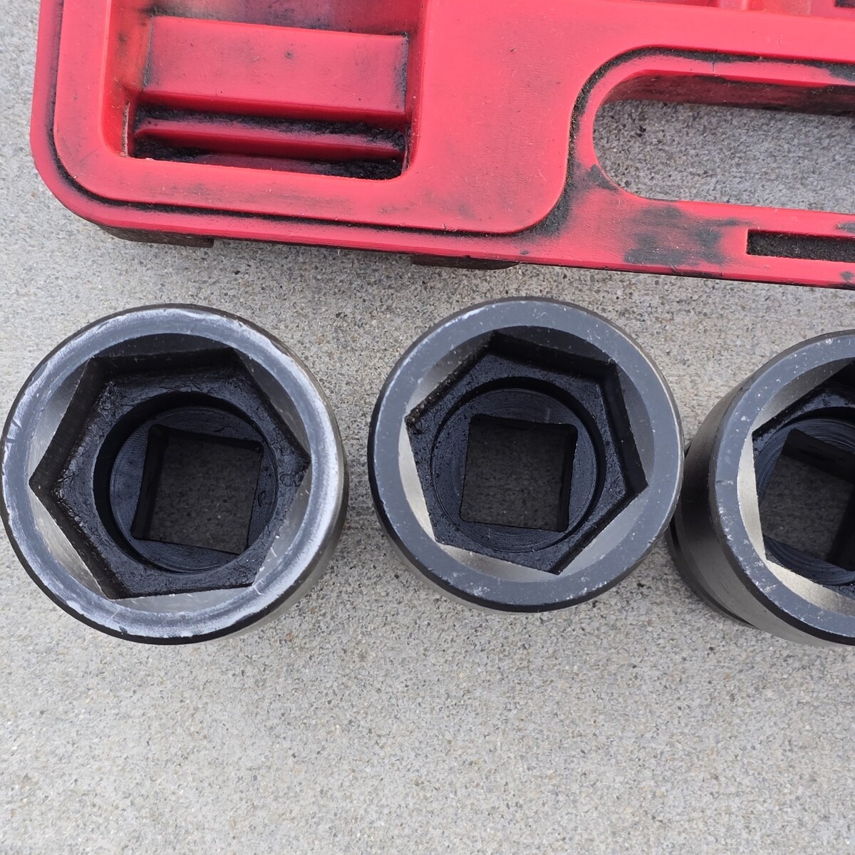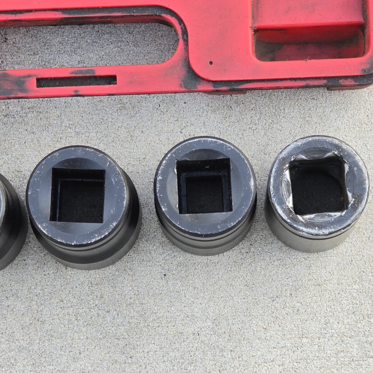 ***Used set overall in great condition. Red case is extremely dirty. Some sockets have leftover grease, dirt, and grime inside. The 33mm socket shows significantly more wear than the others, with the remaining sockets appearing lightly used by comparison. Comes exactly as pictured. Please see photos.***
