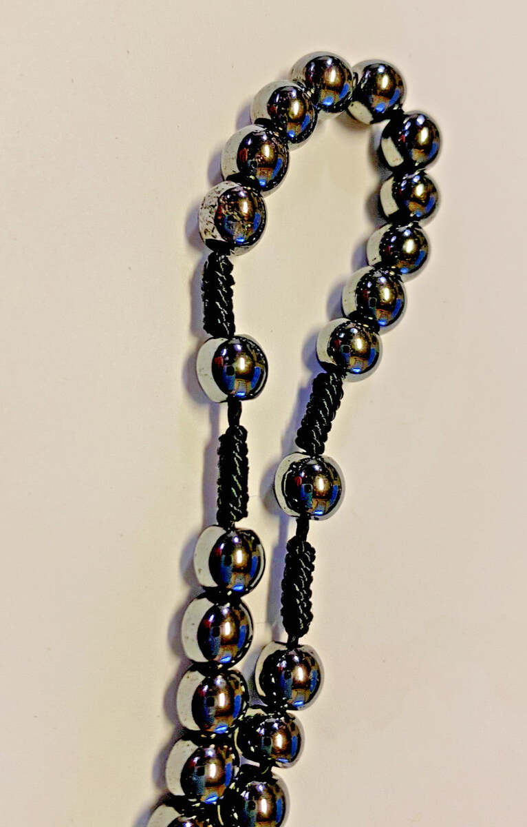 Measurements: 12" in length, the beads are made of hematite and measure 6 mm.
