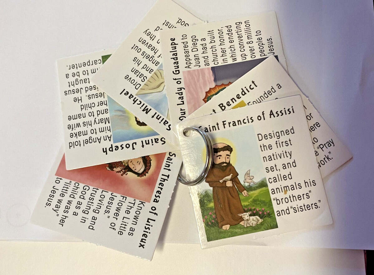 Saints Punch Out cards 2" x 2" on Keychain Ring for Children, New #AB-320-R2