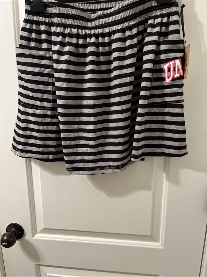 UNLV University Rebels Womens Striped Mini Skirt Pockets School House Size XL Black Gray new with tag.