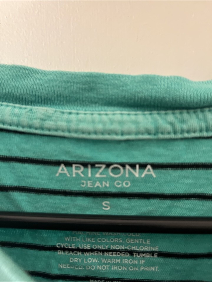 Arizona Jean Co. Men's Striped Short Sleeve T-Shirt Slim Fit Dreams Print Size S Multicolor in good to fair condition.