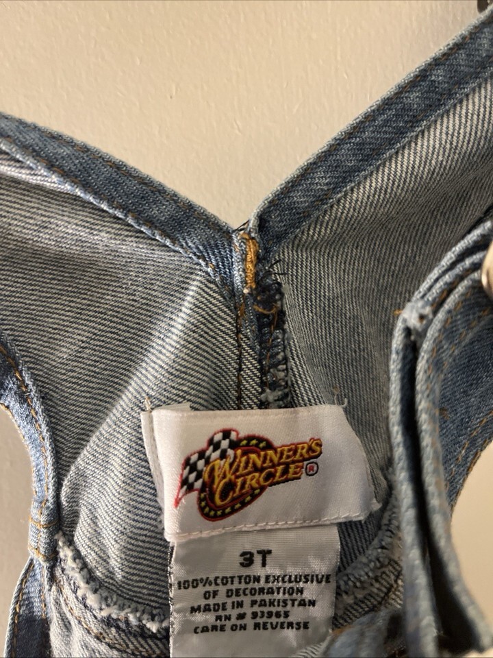 Vintage Dale Earnhardt Jr #8 Denim Bib Overalls NASCAR Toddler Boys Size 3T Blue