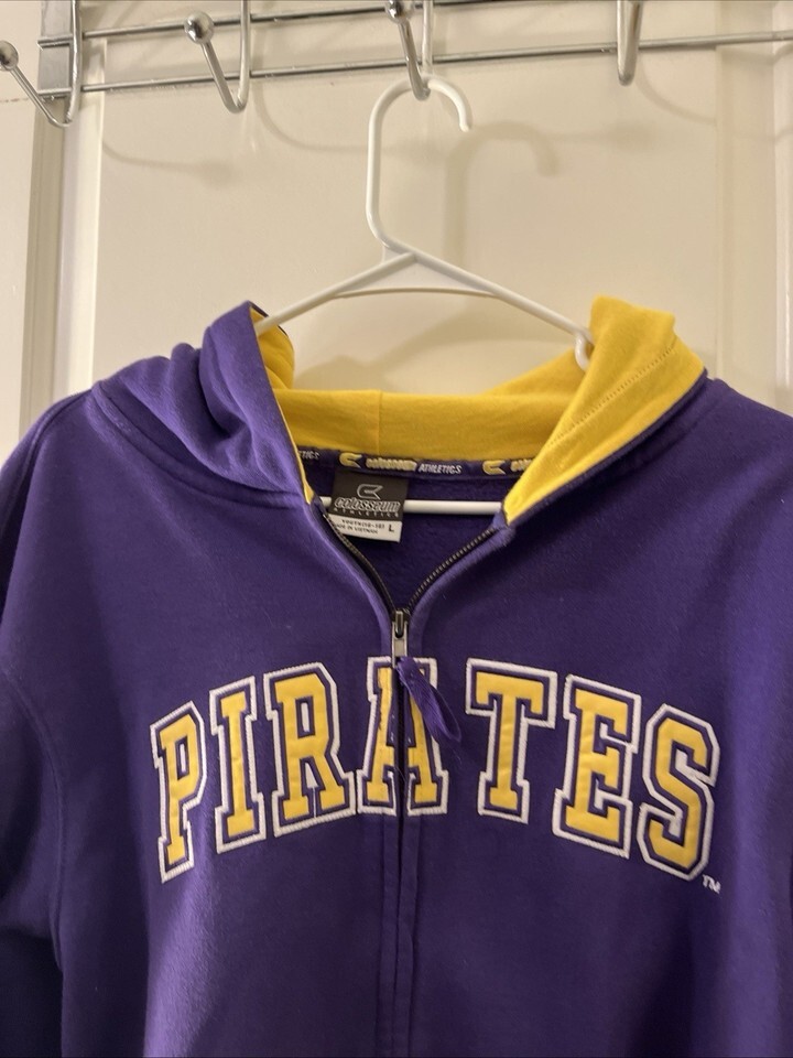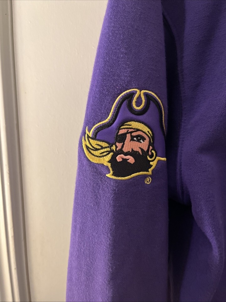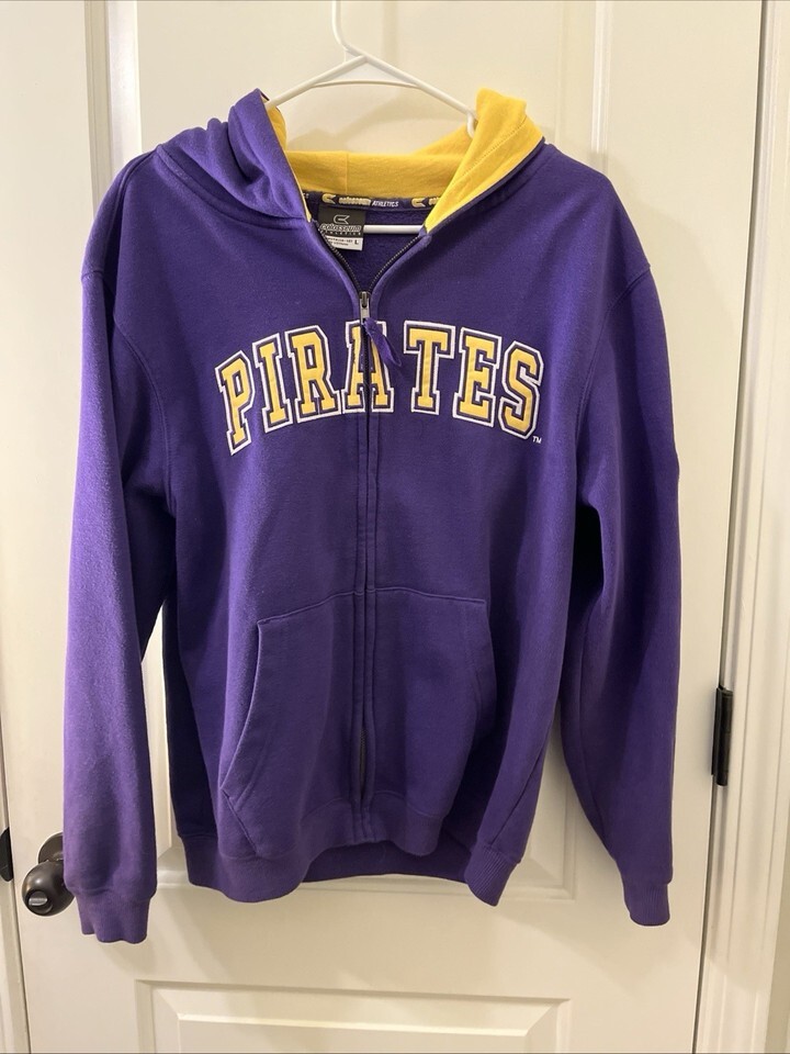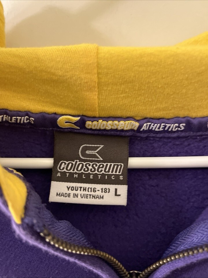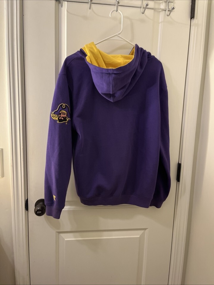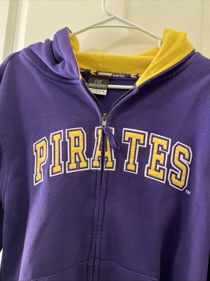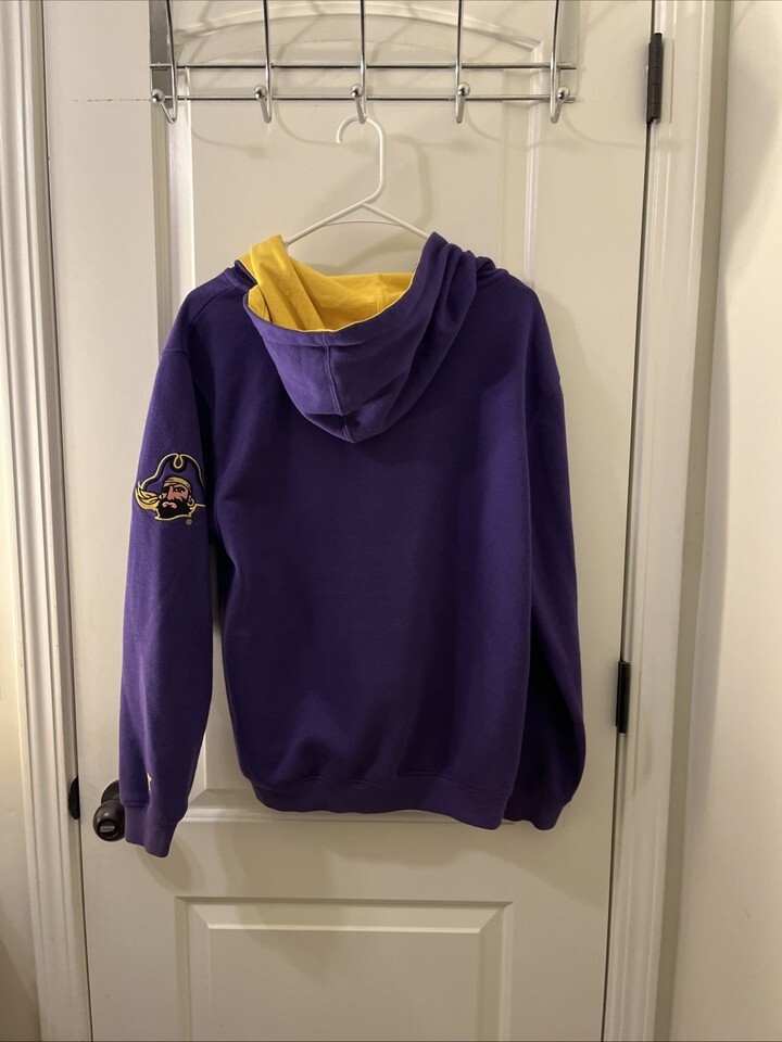Youth Boys L Colosseum Athletics ECU East Carolina Pirates Zip Up Hoodie Purple Gold in good condition. There are some spots/stains on the hoodie in areas.