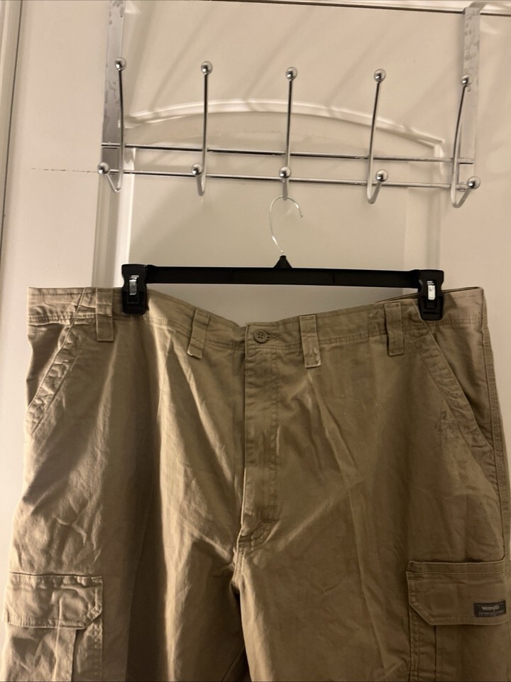 Wrangler Pants Men's Size 46X32 Brown Cargo Relaxed Fit Tech Pocket in good condition.