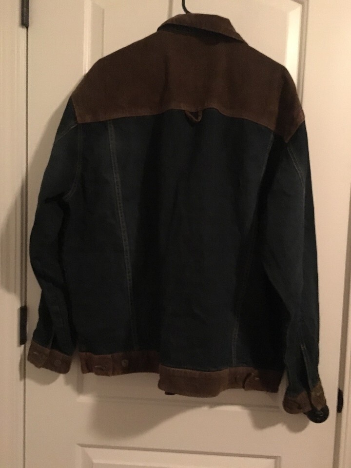 Vintage Storm Indutry Men's Button Up Brown Corduroy & Blue Jean Jacket Size XL