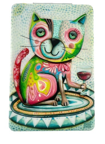 Compact Mirror Colorful Art Cat w Wine w and similar items