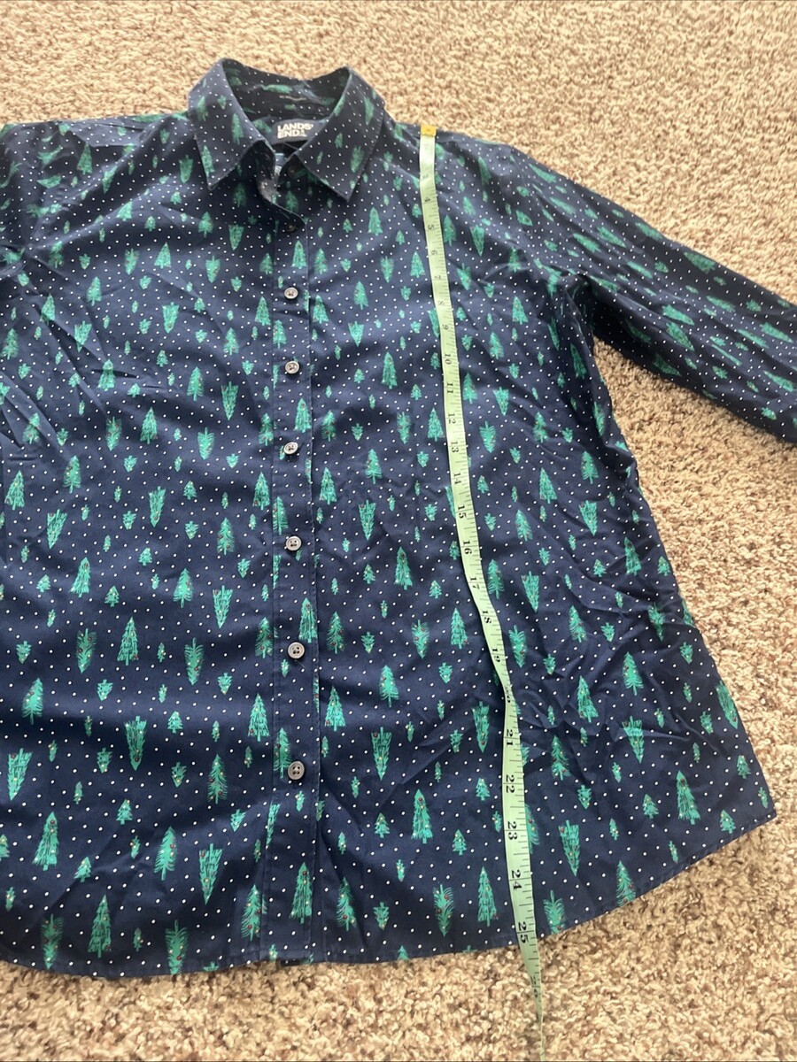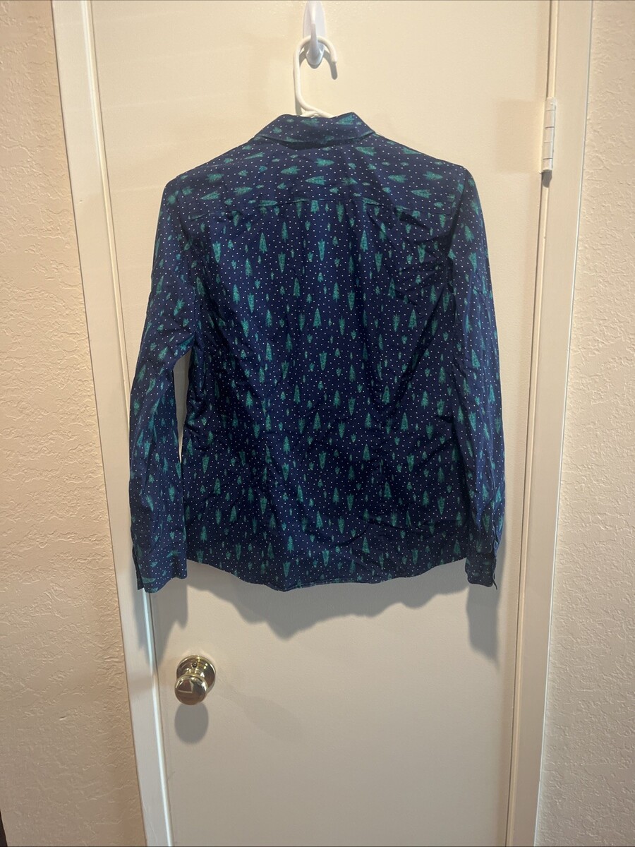 Lands' End Blue with Christmas Trees All Over Button Up Long Sleeve Kids Size 6