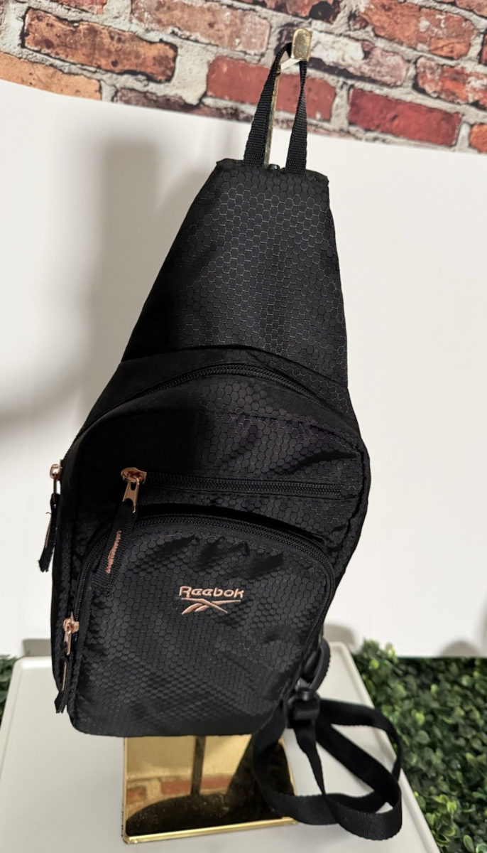Reebok Black Crossbody Sling Bag Hex Pattern Rose Gold Zippers One Size - Gift