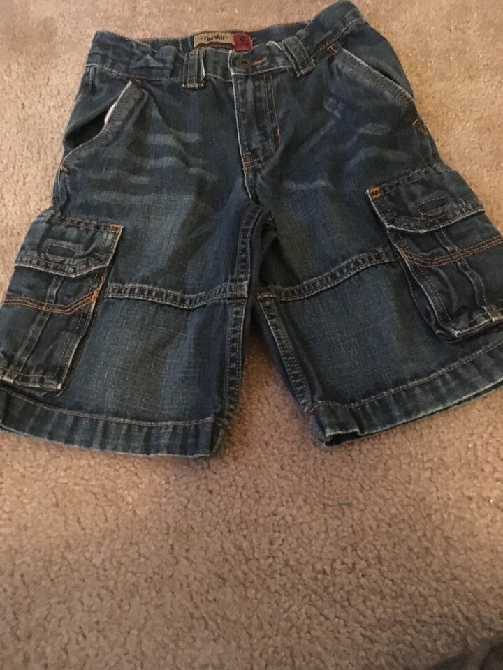 Old Navy Boys Blue Denim Jean Cargo Shorts Sz 6 Regular Clothes in good condition. There are discolorations in the material in places on these shorts.