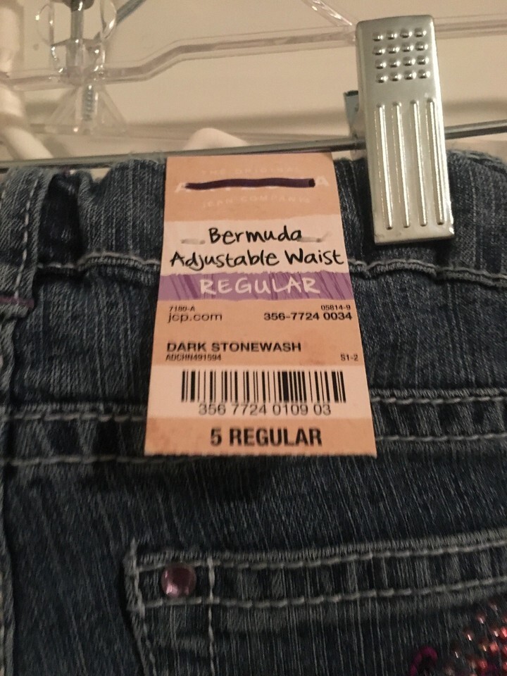 Arizona Jeans Girl's Blue Denim Jean Bermuda Shorts Sz 5 Regular NWT - NEW There is a marker marked through the inner tag on these shorts.