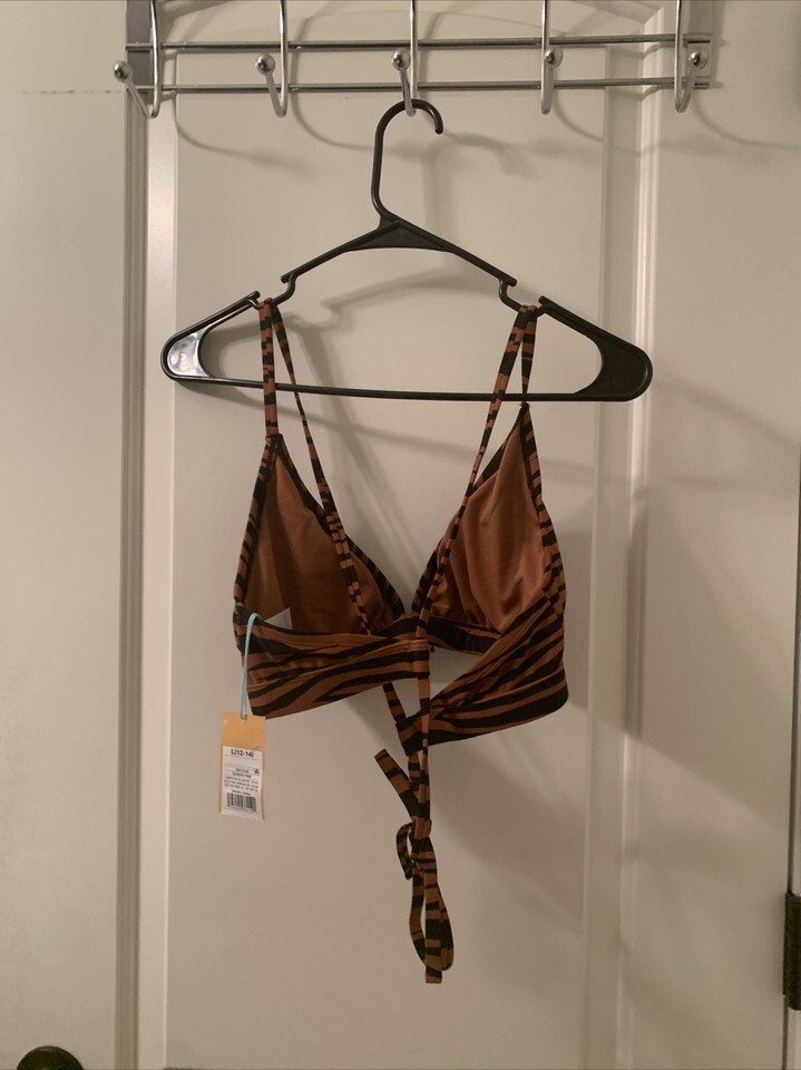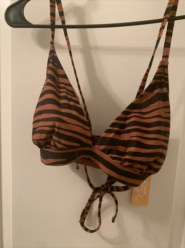 Womens Zebra Print Cross Tie Back Bikini Top Brown Black Kona Sol Choose Size new with tag.