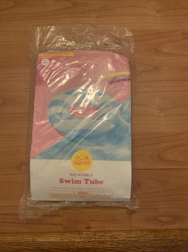 Sun Squad Inflatable 31" Diameter Swim Tube Blue White Striped Pool Float New in package.