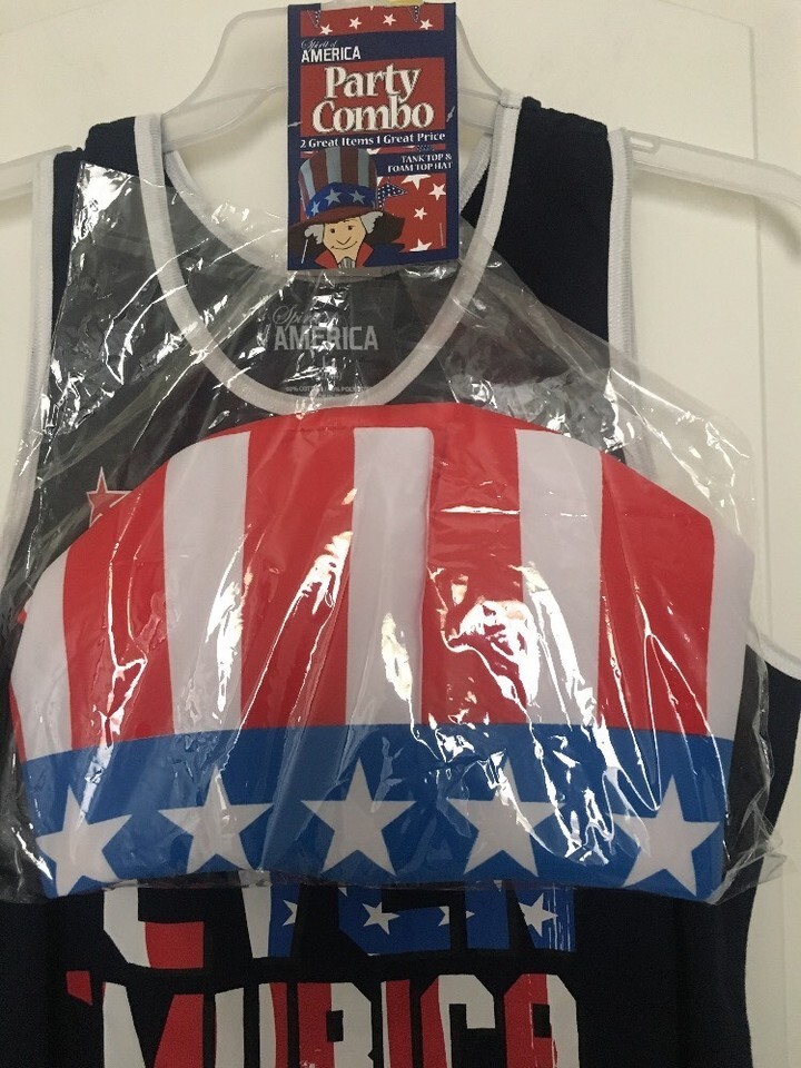 Spirit Of America Patriotic 2-Piece Set Shirt & Foam Top Hat Size L 42/44