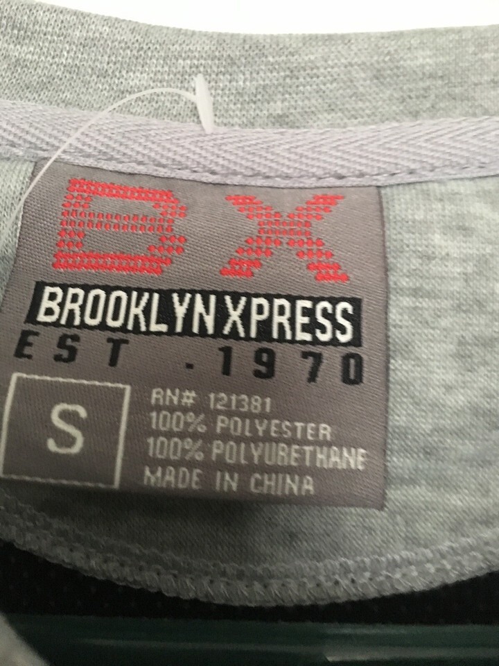 Brooklyn Xpress Men's SweatShirt Shirt Sz S MultiColor Long Sleeve Clothes new without tags. The black parts of the sweatshirt have a different material type. It's Black faux leather with small holes in it.