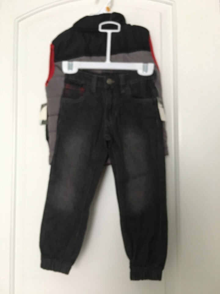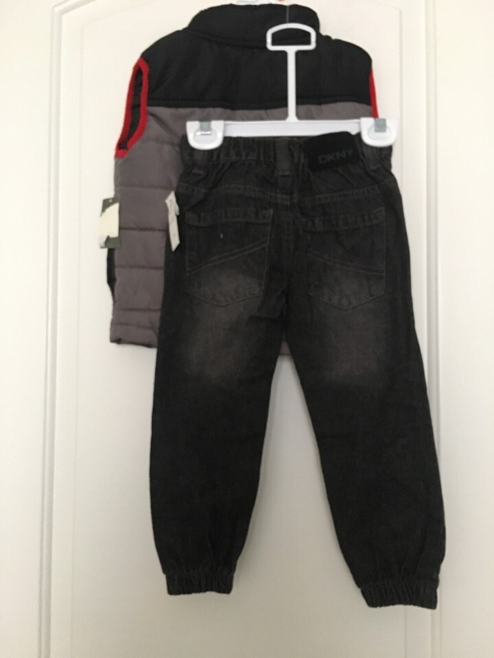 DKNY Toddler Baby Boy's 2-Piece Set Zip Up Vest Jacket Jogger Jeans OutFit Size 3T new with tag.
