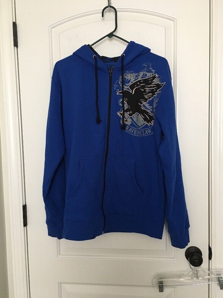 The Wizarding World Of Harry Potter Zip U Hoodie Men's Zip Up Jacket Sz S in good condition. There are a few stains on this jacket in places and the drawstring tip ends are loose.