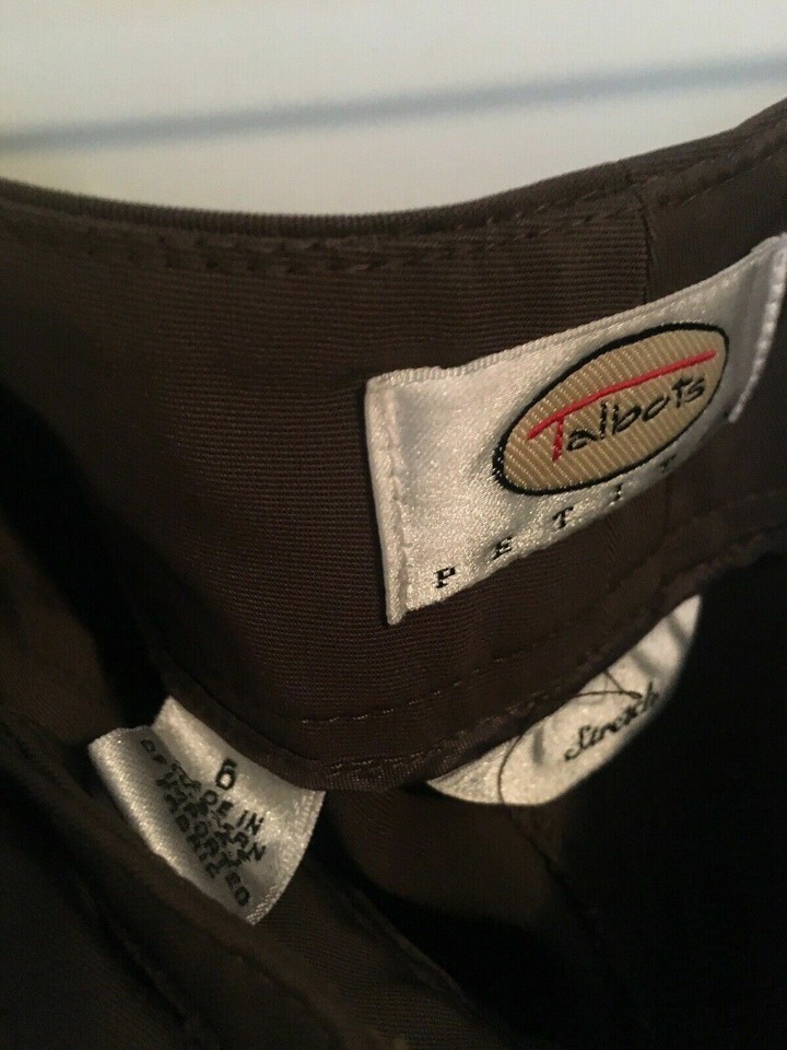 Talbots Petites Women's Dress Pants Slacks Size 6 Stretch Brown in great overall condition. There are snags and small holes beside the clasp openings of these pants.