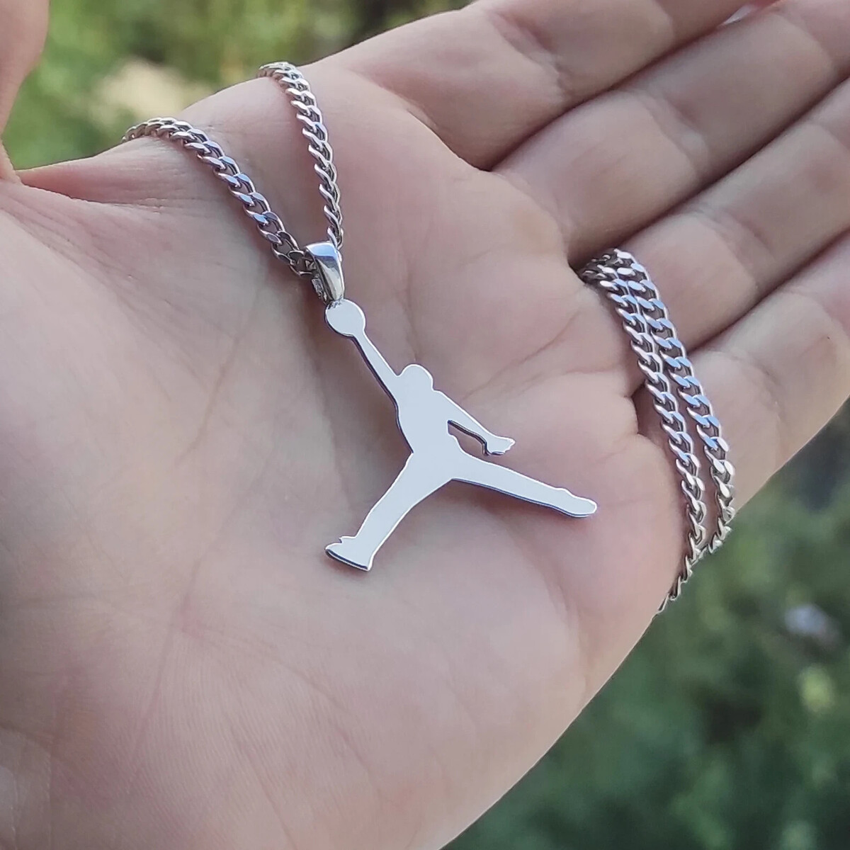 Celebrate the GOAT of basketball, with this iconic Jump Man silver necklace