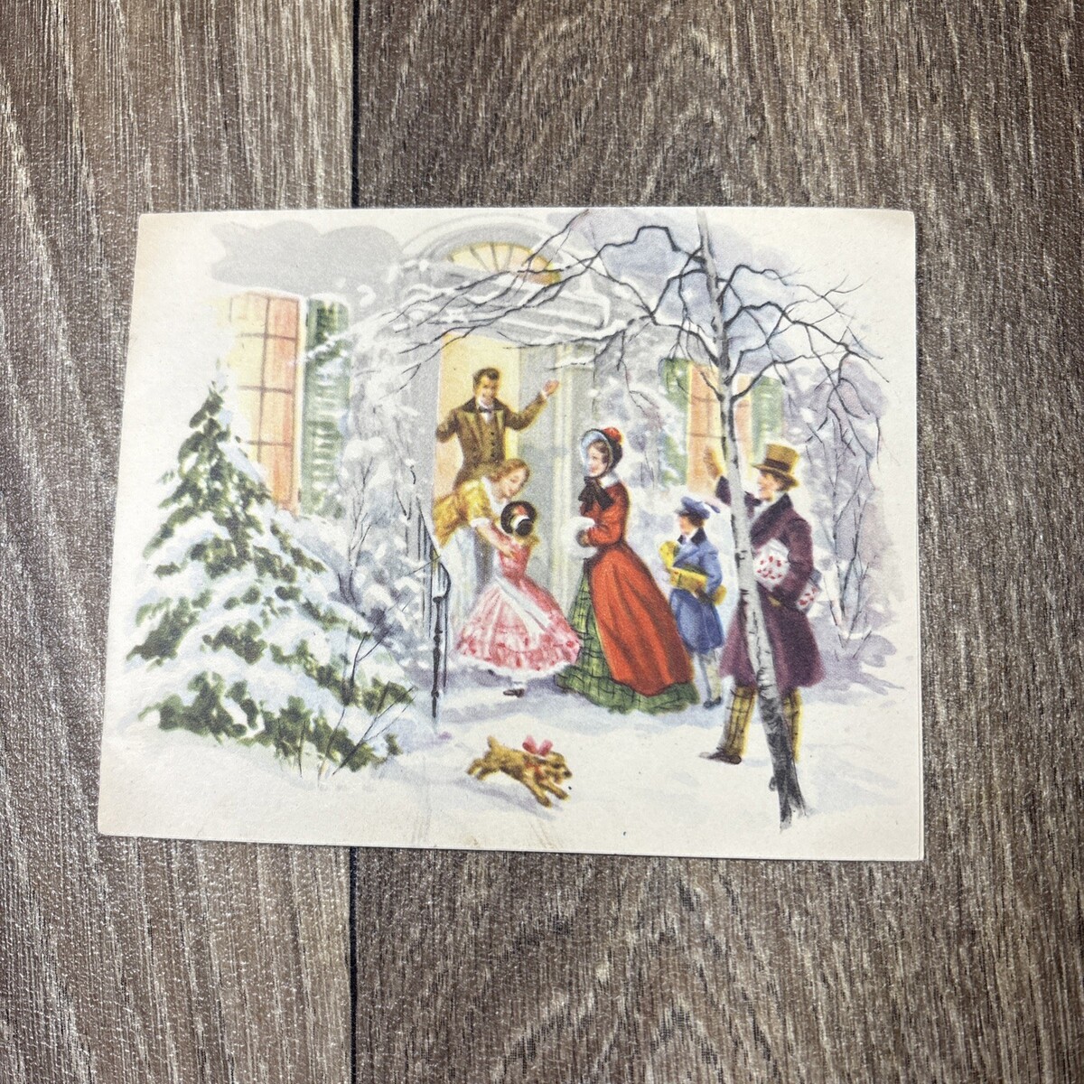 Vintage Folded Christmas Holiday Card Victorian Snow Scene