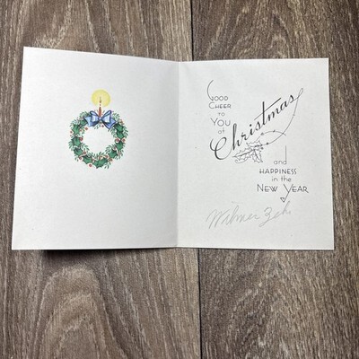 Vintage Folded Christmas Holiday Card “A Merry Christmas” Indoor Scene