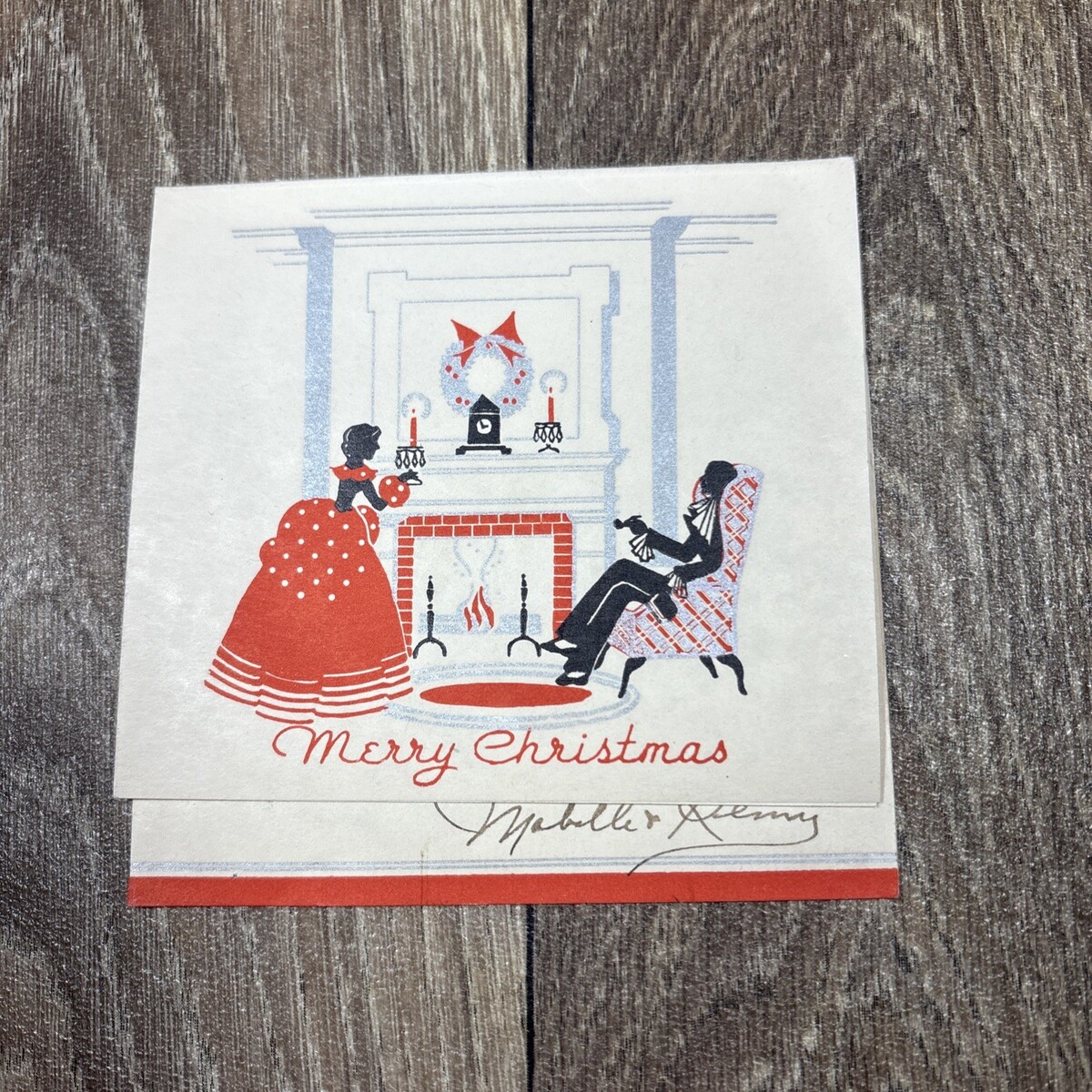 Vintage Folded Christmas Holiday Card “Merry Christmas” Man/Woman Fireplace