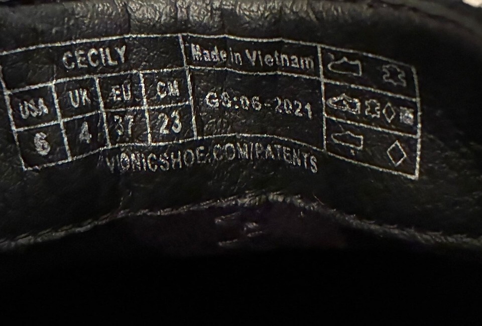 Vionic Cecily Black Leather Waterproof Ankle Booties offer both style and practical functionality. These chic black leather booties are designed to keep your feet dry while providing Vionic's signature comfort. Featuring a side zipper with a 'V' detail and a 'WATERPROOF' tag, they are ready for any weather. The sturdy block heel and durable rubber sole ensure stability and lasting wear. Perfect for everyday wear or dressing up, these boots combine fashion with orthotic support. Made in Vietnam, 06-2021. Excellent pre-owned condition, with minimal signs of wear on the soles.