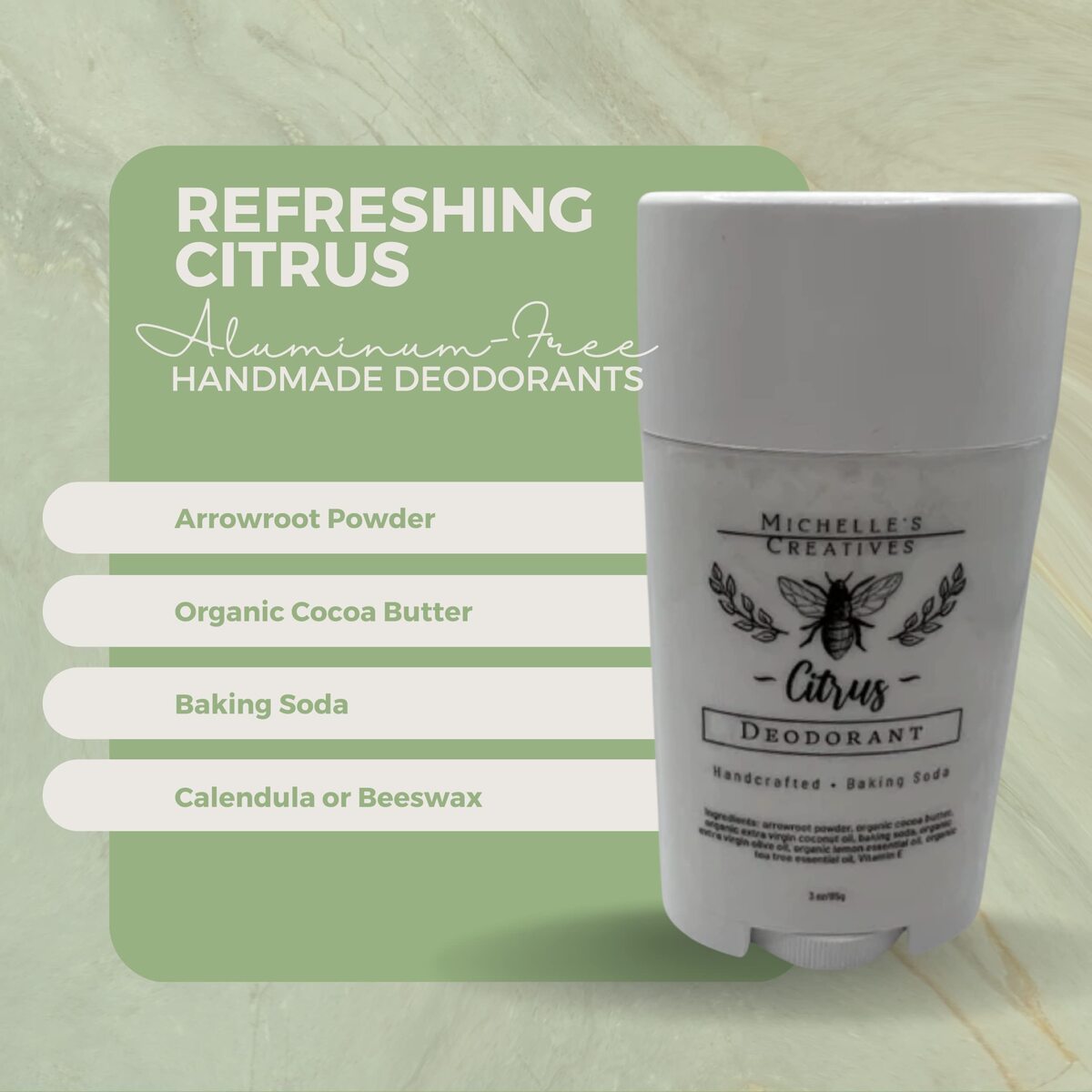 Michelle's Creatives Refreshing Citrus Aluminum Free Deodorant - Handmade and Na