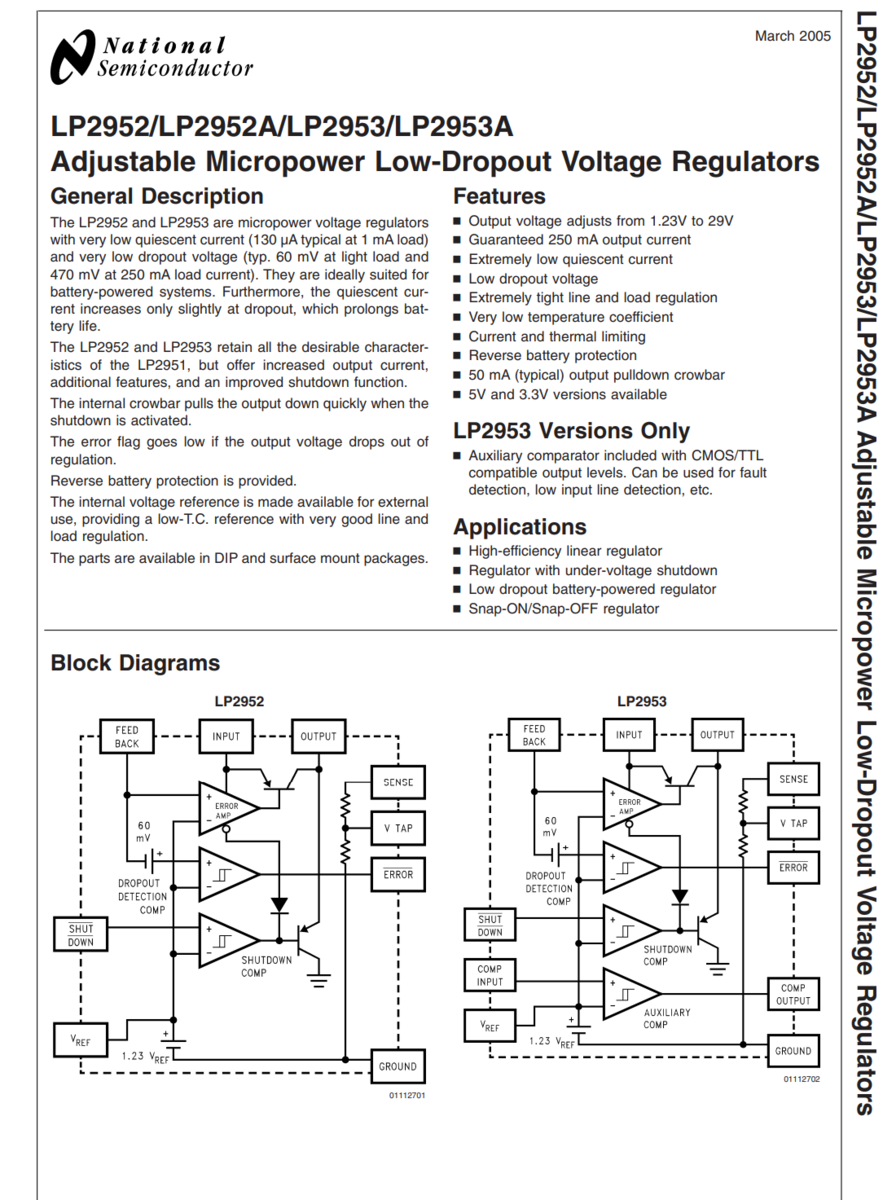 1X LP2952AIN NSC Adjustable Micropower Low and 50 similar items