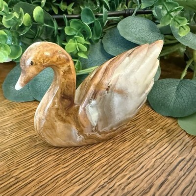 Vintage Hand-Carved Onyx Stone Animal Set – Swan & Donkey Figurines, Calcite