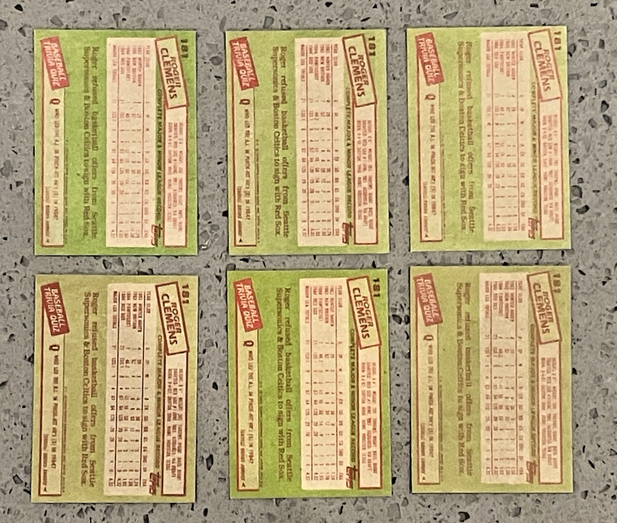 (6) 1985 Topps Roger Clemens Rookie Lot #181 NM-MT Boston Red Sox
