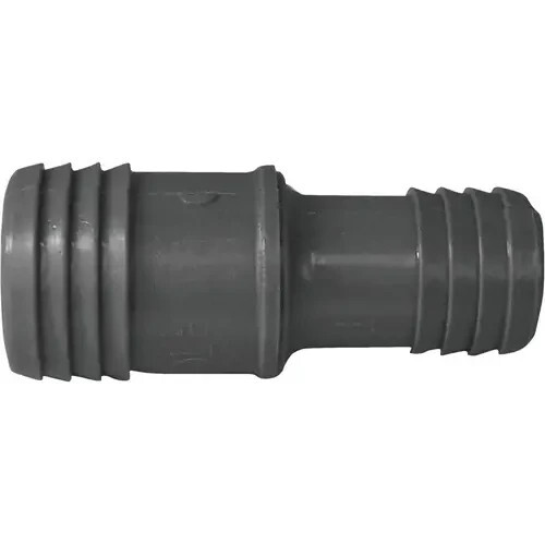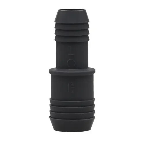 This reducing coupling is commonly used by plumbers, landscapers, and DIY installers to connect dissimilar sizes of polyethylene tubing in cold water supply lines, drip irrigation networks, agricultural watering systems, and rural plumbing setups. Its insert design creates a tight mechanical seal when tubing is pushed onto the barbed ends, making it ideal for low-maintenance, non-pressurized or moderate-pressure applications. Frequently installed in garden beds, greenhouse irrigation, livestock water lines, or cabin water systems, it offers a durable, code-compliant solution that simplifies repairs, expansions, and transitions between tubing diameters?ensuring dependable flow with minimal installation effort.