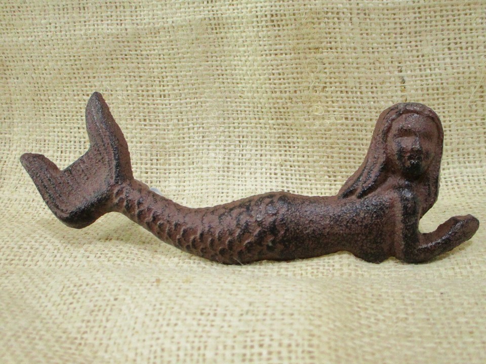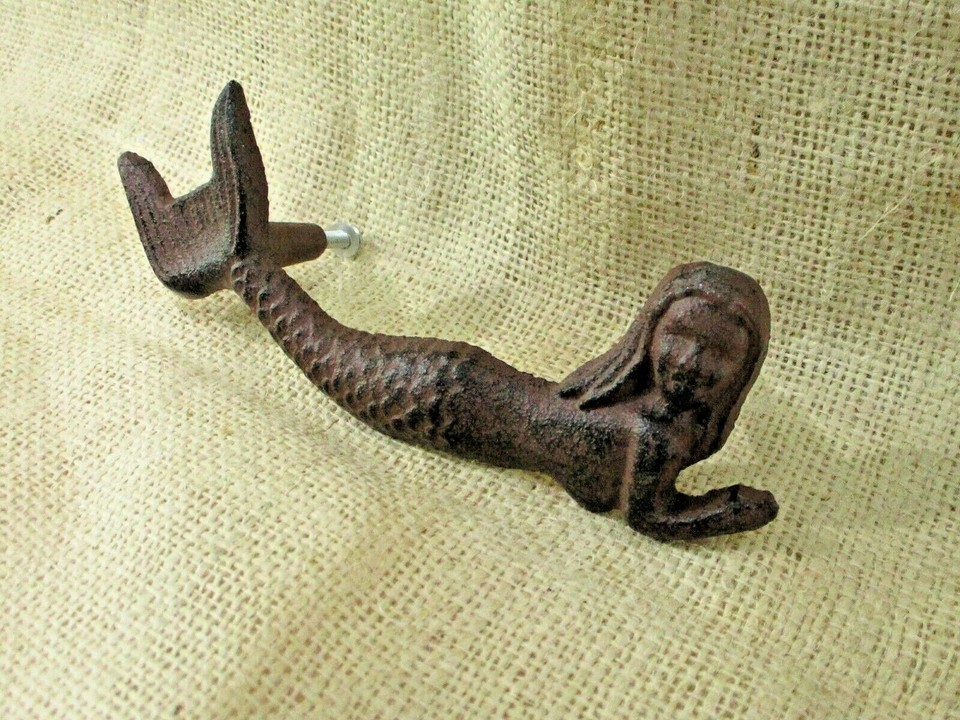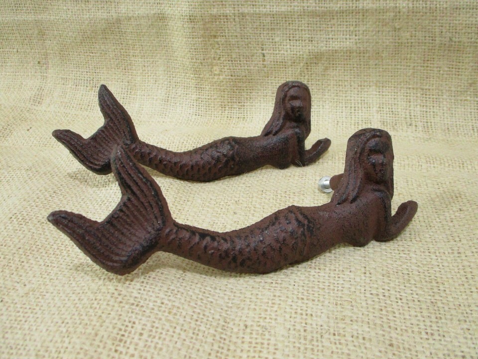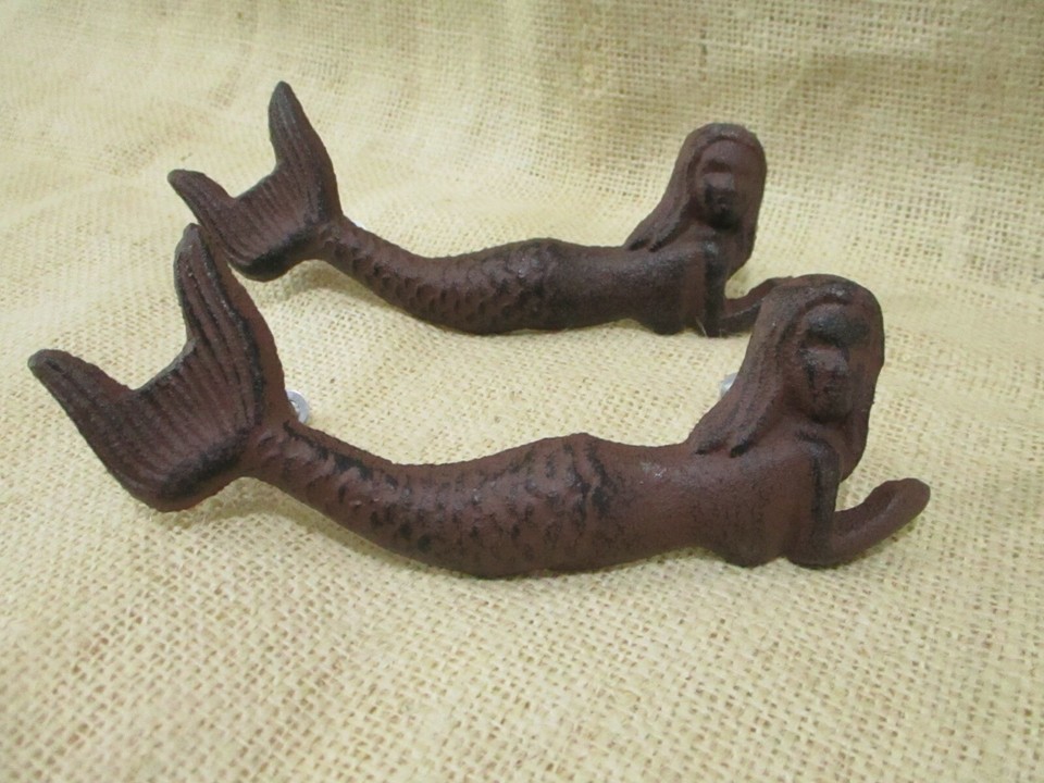 2 RUSTIC CAST IRON MERMAID DRAWER PULLS! SALE INCLUDES 2 PULLS!