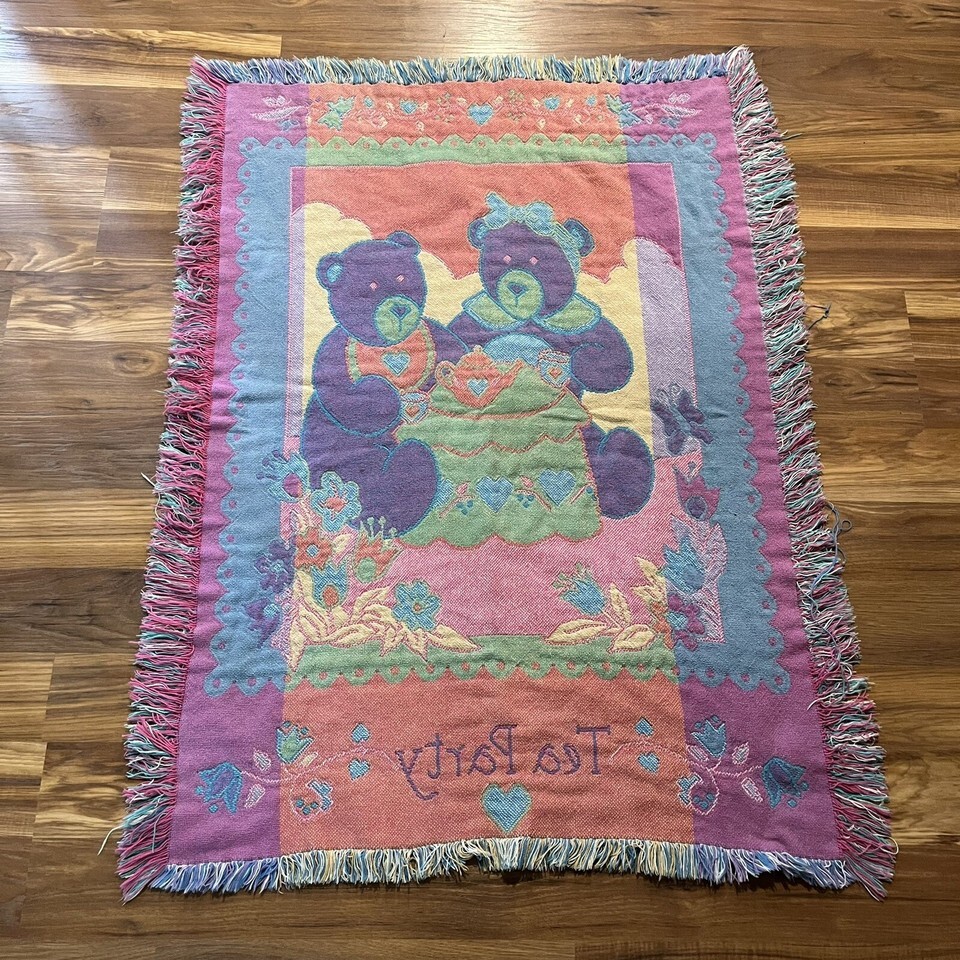 Vintage Teddy Bear Tea Party Tapestry Throw Blanket Nursery Wall Hanging
