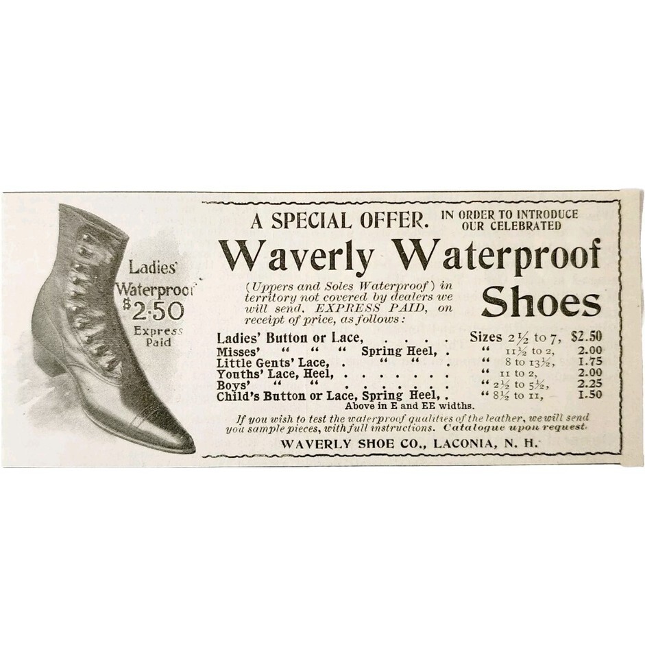 Waverly Waterproof Sole Shoes 1897 Advertisement Victorian Footwear ADBN1www