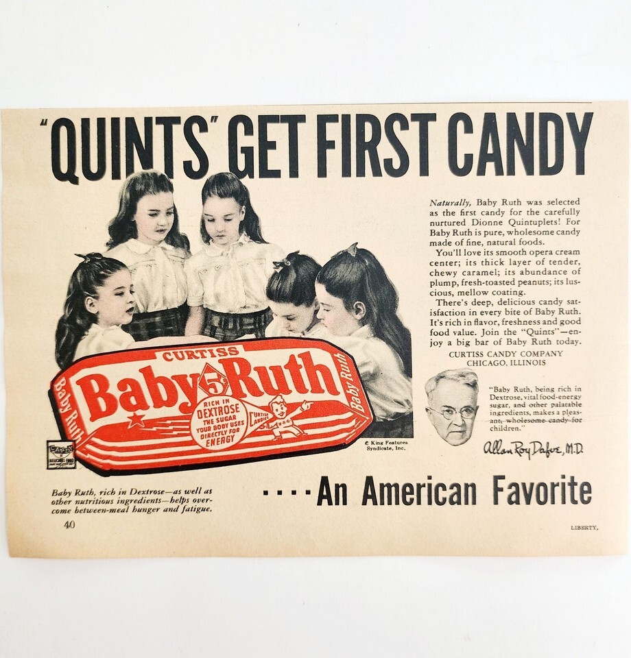 1941 Curtiss Baby Ruth Candy Bar Advertisement Candy Quituple Girls DWNN12
