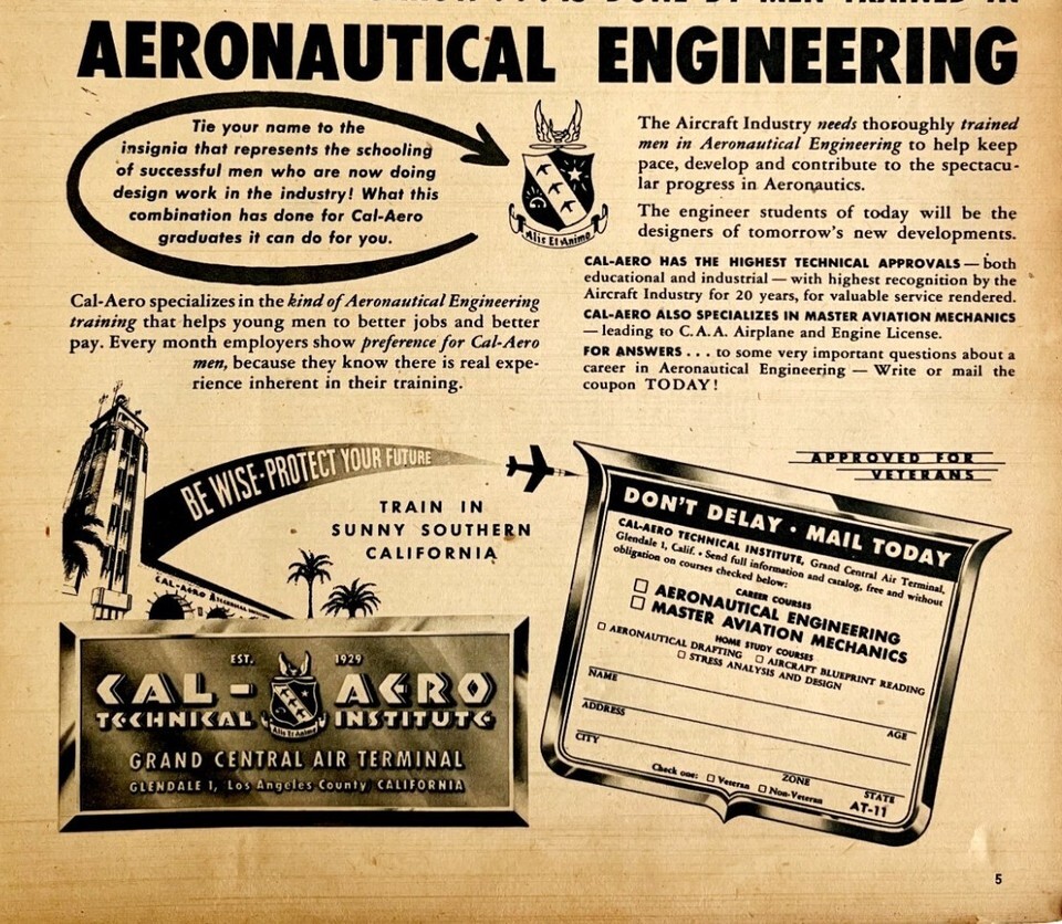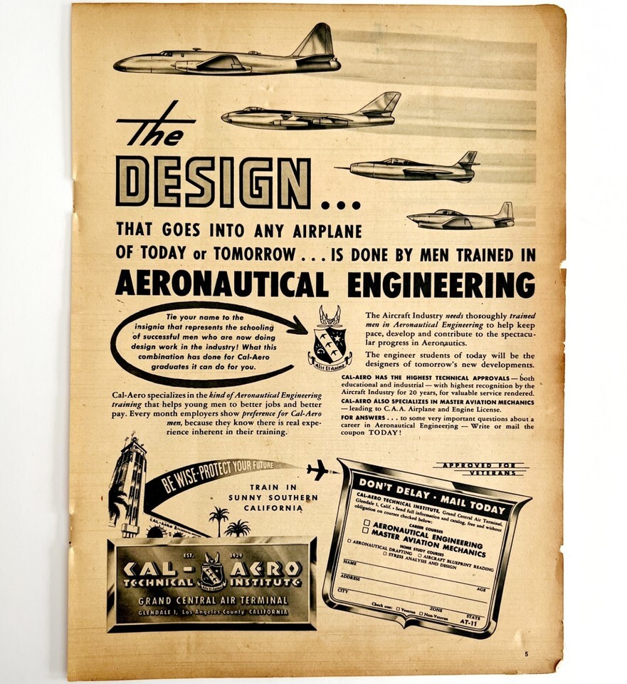 1949 Aviation Cal-Aero Institute Advertisement Aeronautical Engineering CA