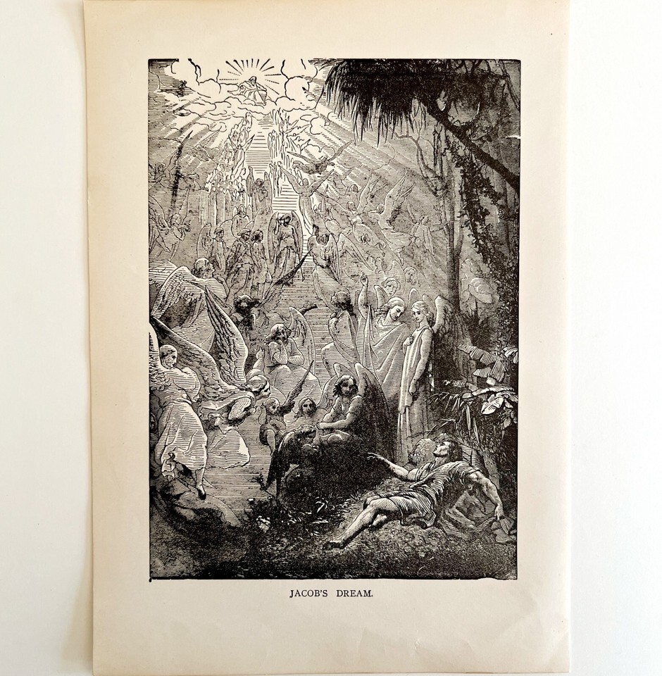 1901 Jacob's Dream Of Angels Victorian Plate Print Religion Christian DWDD8