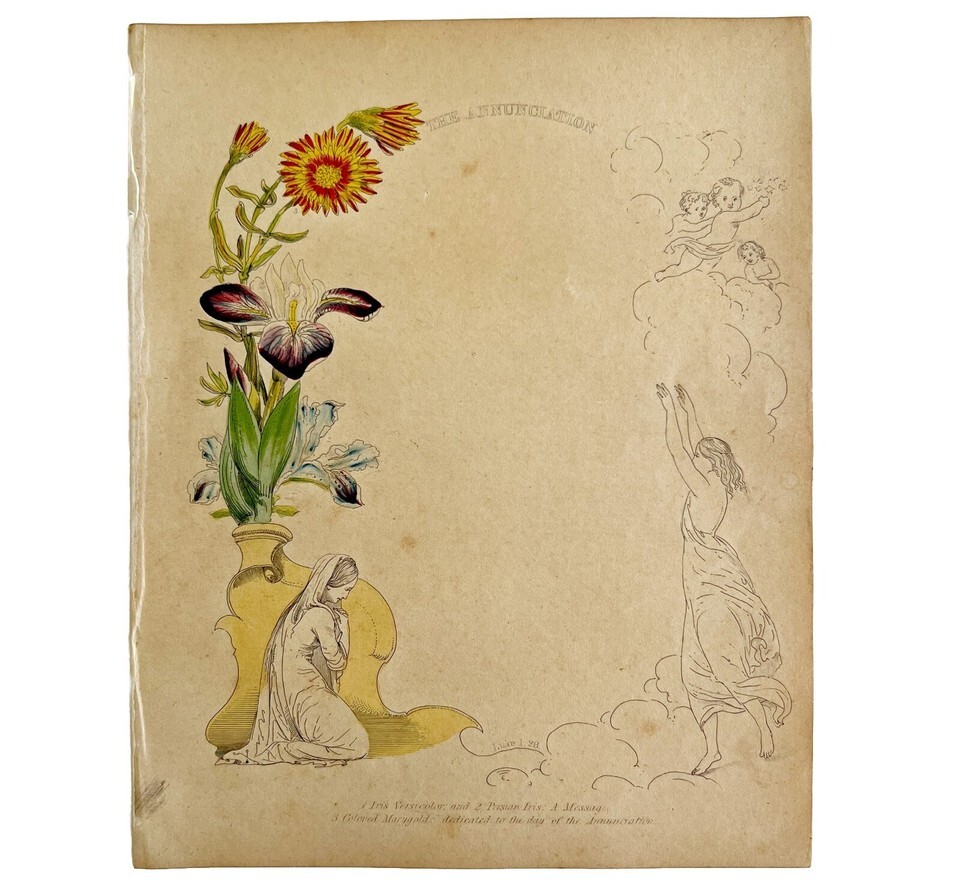 Floral Marigold Iris 1880s Victorian Annunciation Hand Colored Art DWKK18