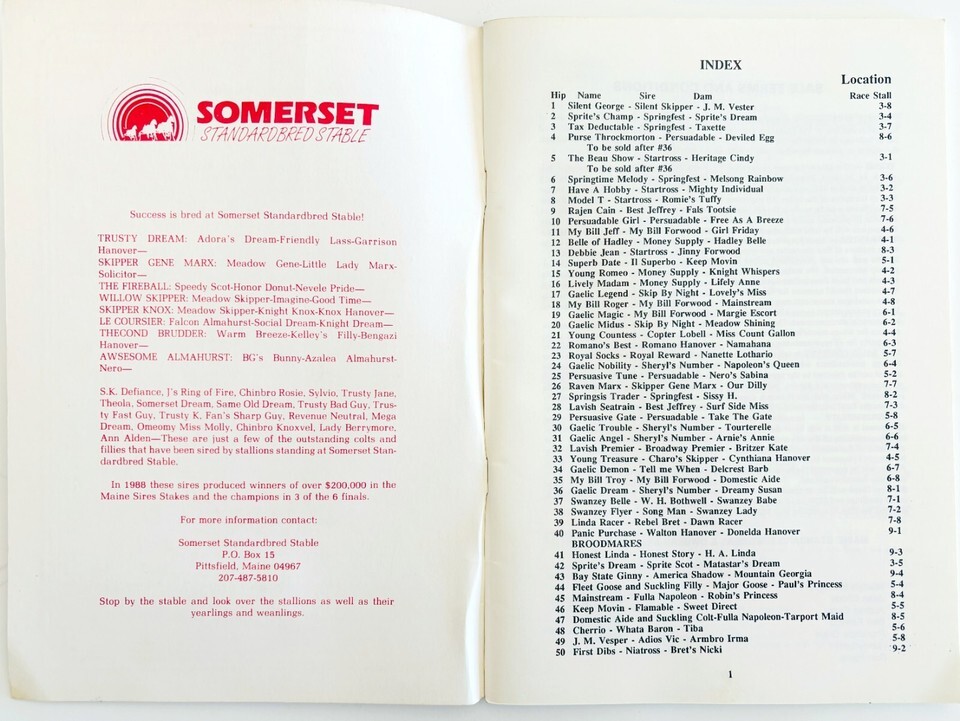 1989 5th Annual Horse Breeders Sale Program Booklet Scarborough Downs Maine E41A