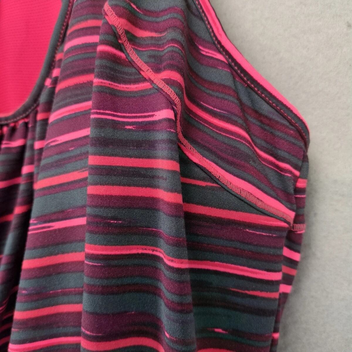 Features: Tank, Athletic Fit, Scoop Neck, Breathable, Built-In Bra, Drawstring Hem, Easy Care, Lined, Moisture Wicking, Quick Dry, Stretch, Sleeveless, Striped Pattern, Pullover Closure, Machine Washable
